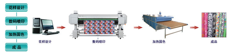 涂料墨水應(yīng)用于織物噴墨印花不需要復(fù)雜的前處理和后處理工藝,直接對織物進行噴墨印花,然后僅需簡單的焙烘即可。